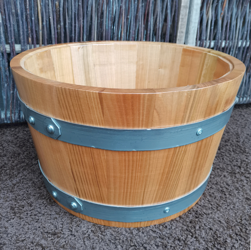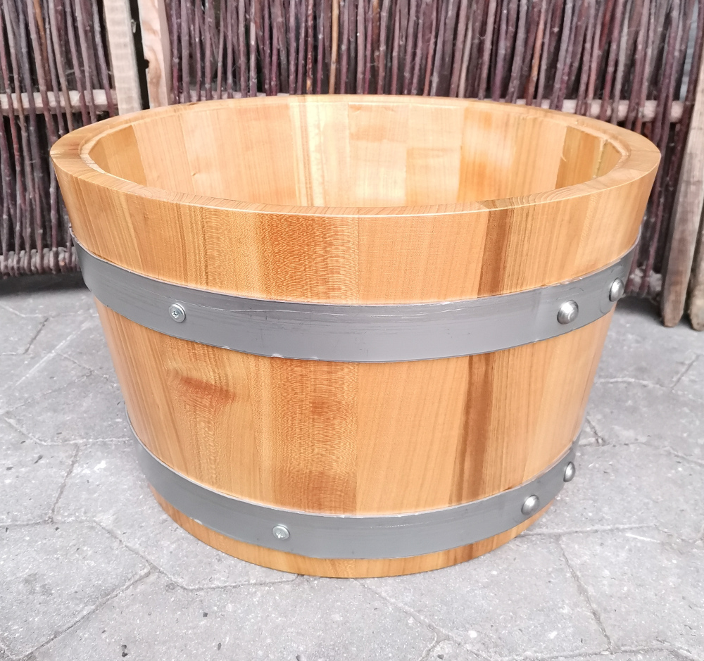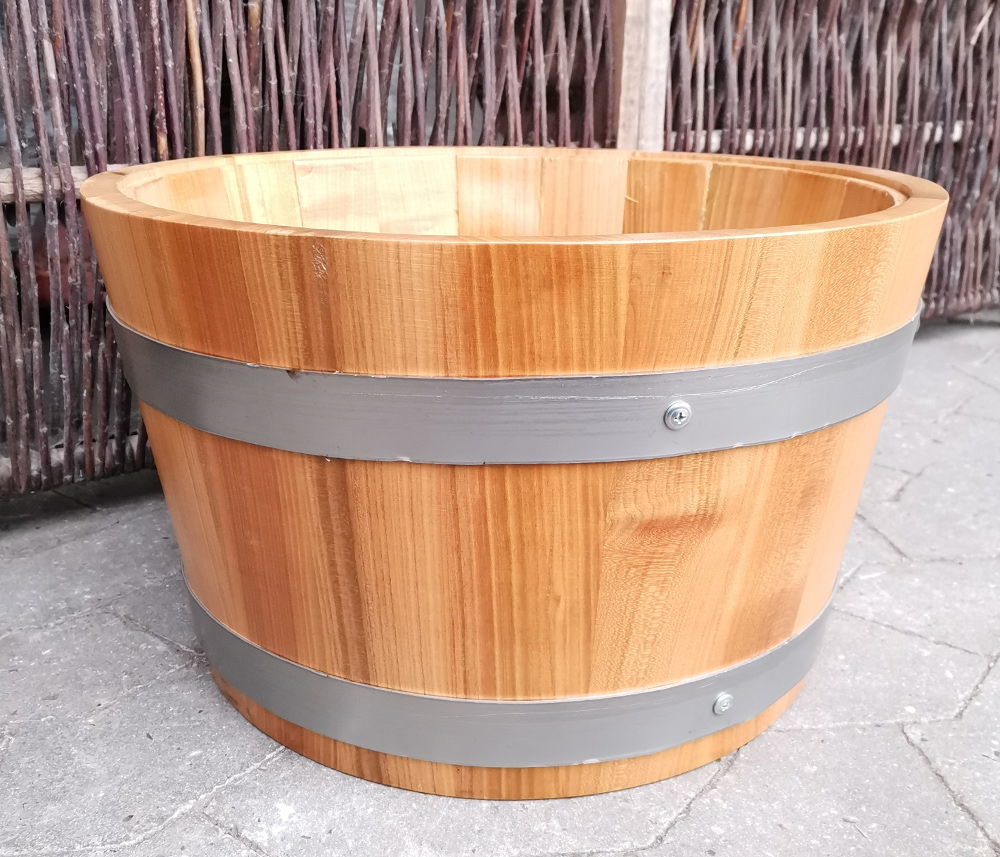 Nyproduceret lille halv tønde fra Italien med Galvaniserede ringe. Rigtig smuk udgave af en halv " Whiskytønde " - bare i lys nordisk stil og en del af deLuxe-serien.