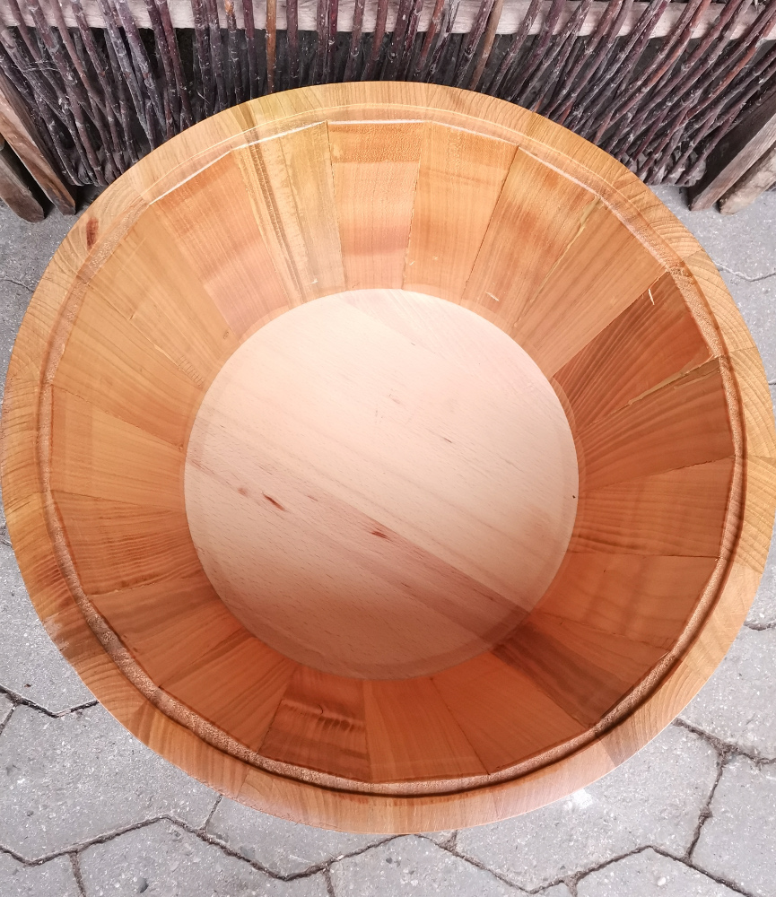 Selvom den er uden hul i bunden kan man dog ikke med sikkerhed sige at den er vandtæt fra starten da træet jo er tørret omend tæt samlet. Denne type tønde egner sig bedst til lejlighedsvis og kortvarig våd brug eller konstant tør brug. Brug evt en plastpose eller plastbeholder inde i tønden for en sikkerheds skyld, hvis du bare skal bruge den som is-køler en enkelt gang om året. Ønsker du at bruge den kontinuerligt til våd brug, fx som vandbassin eller opvaskebalje, så vær opmærksom på at træ der fugtes op vil udvide sig (derfor kan tønder blive vandtætte) og det kan blive nødvendigt at justere tøndebåndene en smule nedad for at give træet plads til at udvide sig.