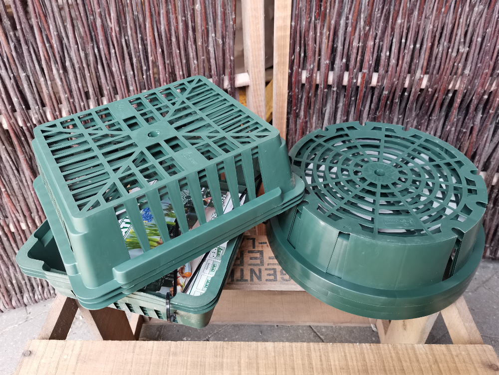 Efter oprydning på lageret har vi fundet udgåede/udsolgte Plantebakker eller løgkurve i grønt plast.