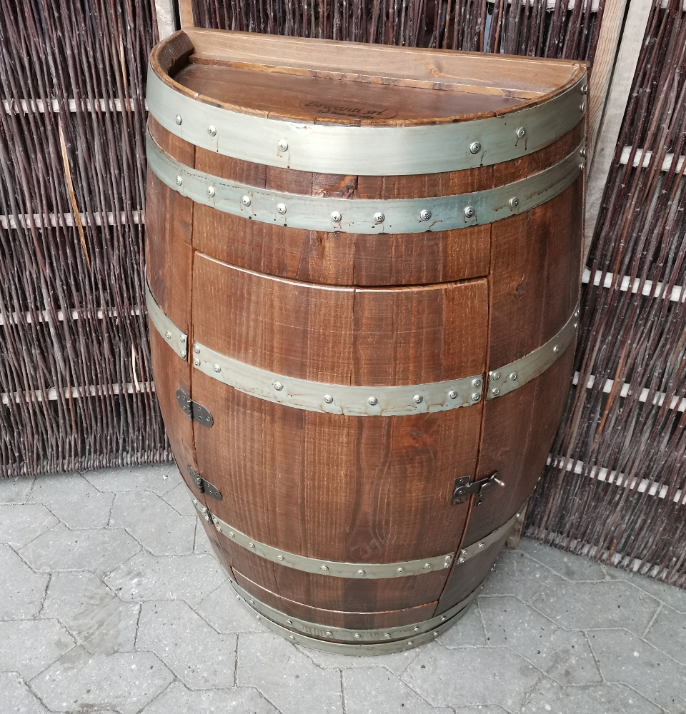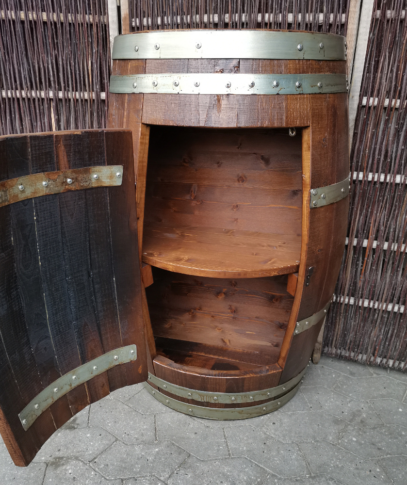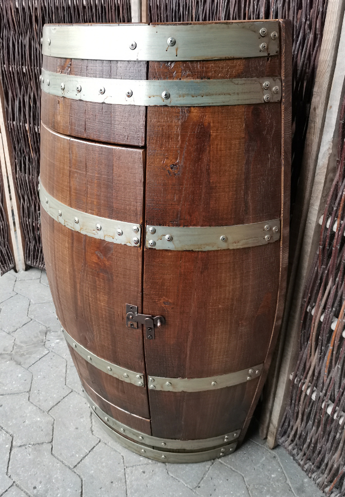 Tøndeskabet er fremstillet i Italien ud af en tønde af kastanietræ eller birketræ efter tilgængelighed. Tønden er tørret, bejdset og lakeret så den fremstår både smuk og stilfuld men med brugsspor. Den lakerede overflade gør at den er let at rengøre. Tønden er delt på langs og der er monteret en plade bag på så man opnår den halve vintønde som kan stilles op mod en væg eller stolpe eller hvor ellers der ikke er plads til et helt rundt skab.