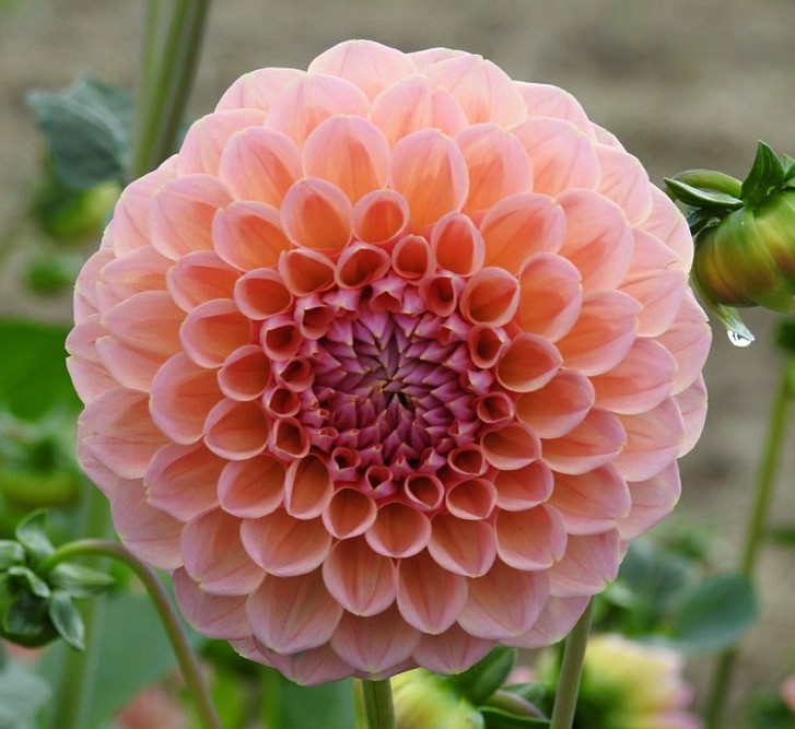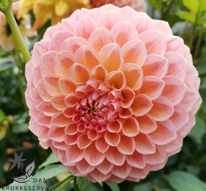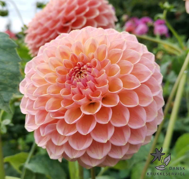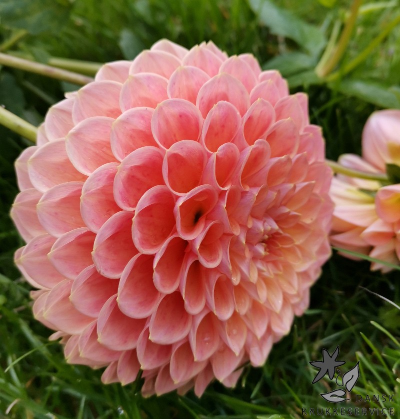 De yndigste velformede blomster i lys Laks med forskellige nuancer af fersken. Temperatur har som hos mange georginer indflydelse og her er det på om tonerne vipper mod de orange eller de rosa nuancer.