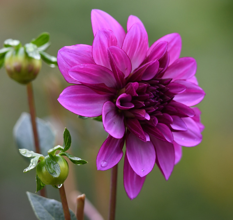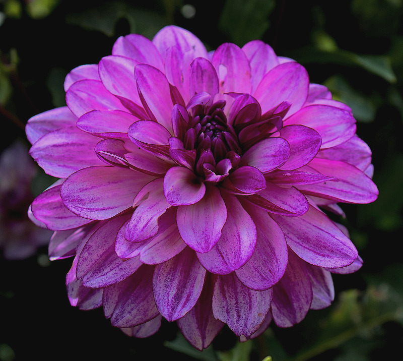 En Dahlia med varierende lilla, violette, of rødviolette farver.