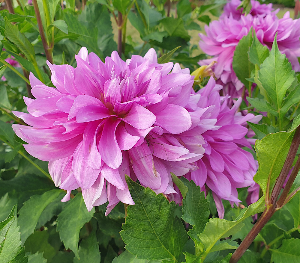 Det er en Sport af den flotte lilla Purple Taiheijo georgine og det kan indimellem ses hos nogen af planterne at den bevæger sig lidt tilbage mod sit ophav og kan få ret mørke blomster eller måske mørke streger i nogen af blomsterne. Så man kan få lidt forskellige blomster hvis man planter flere knolde af den.