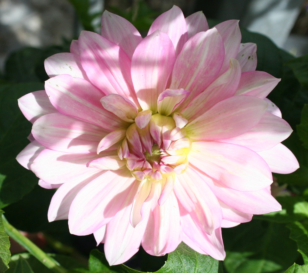 Den tilhører den dekorative gruppe og farverne er primært i rosa toner med lidt gult i bunden. Flotte store blomster som let bliver 20 cm i diameter. En virkelige imponerende georgine.