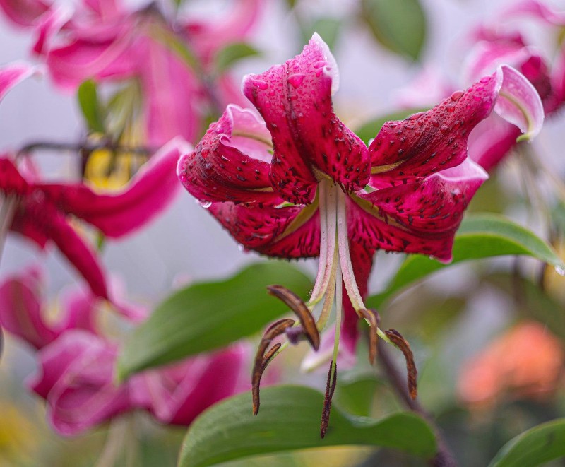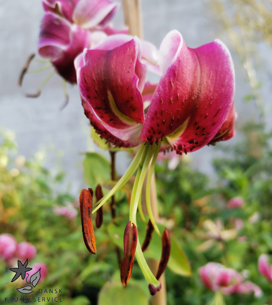 Black Beauty Liljen med Smukke turbanformede blomster fra hindbærpink til karmosinrød med hvide og grønne farver i svælget og fin parfumeret. Blomstrer oftest fra første halvdel af august og ind i September.