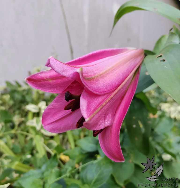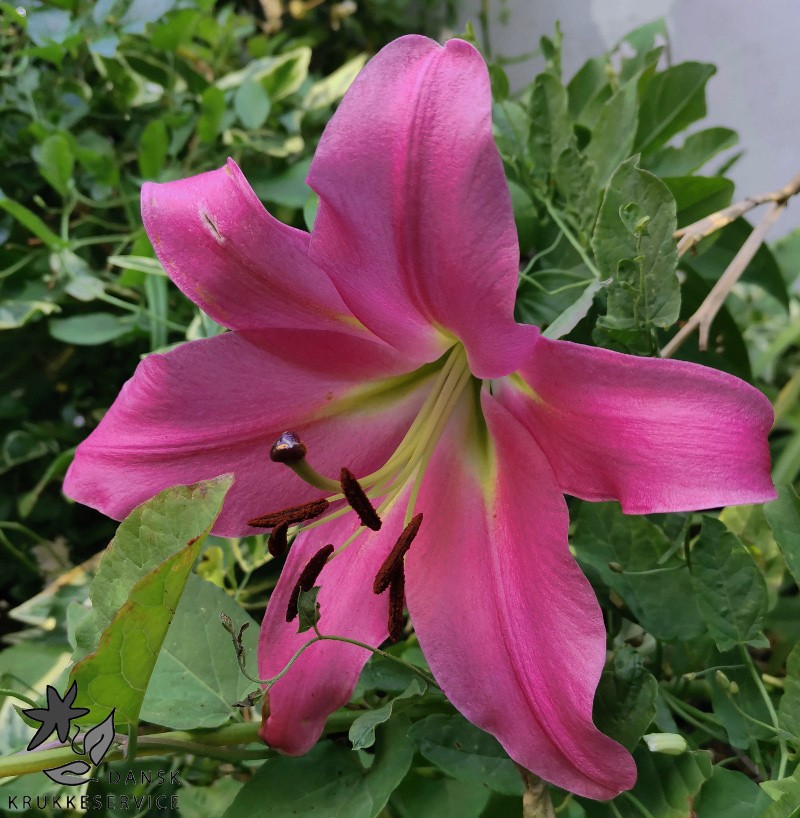 Trælilje der får duftende store hindbærpink blomster med strejf af lilla toner og et hvidligt svælg.