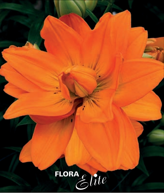 En dobbelt asiatisk lilje der starter med pompon-agtige knopper i grønlige toner og som den springer ud skifter den farve til orange. Vi har kun et leverandørbillede da vi ikke har prøvet den selv endnu, men prøv evt. at søge på "Lilium Hulk" på nettet og se hvor forskellig den tager sig ud fra knop til fuldt udsprungen blomst.