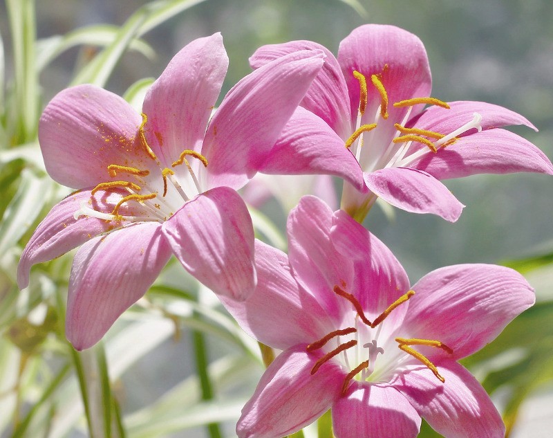 Zephyrantes rosea kaldes også for Zefyrlilje på dansk. Fine rosa til lyserøde blomster.